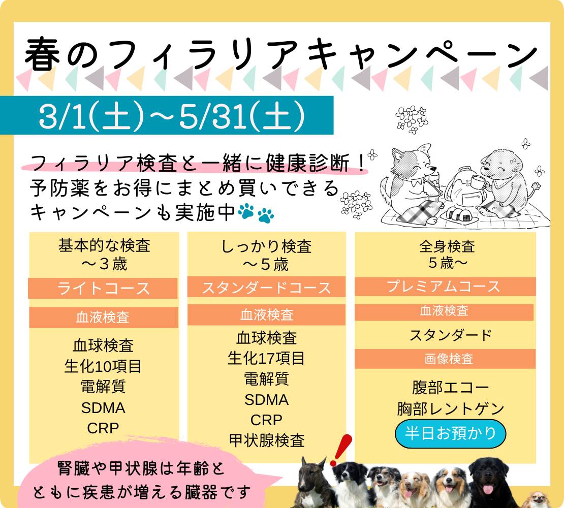【春の健康チェック🌸】フィラリアキャンペーン始まります🐶✨️専門医が丁寧に診察🩺歩き方・かゆみ・慢性的なお悩みもご相談ください💛予防薬のご相談も承ります🐱🐶