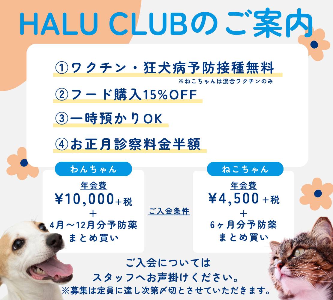 【健康診断🌸キャンペーン】HALUクラブのご案内🤲予防薬は毎月忘れずに🙋‍♀️